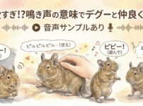 デグーはチリ原産の草食性の小型哺乳類で、その愛くるしい外見と賢さで人気を博しています。 体長は12cmから20cmで、しっぽを含めない体重は350g以下、比較的長寿で、通常は5年から8年生きることが可能です。。 また、デグーは高い社会性を持ち、同種とのコミュニケーションが非常に得意で、非常に種類の多い鳴き声と、コミュニケーション能力から『アンデスの歌うネズミ』とも呼ばれています。 デグーの特性として、その高い知能が挙げられ、人間の2〜3歳児と同等の知能を持つとも言われています。 このように、デグーはその特 ...
