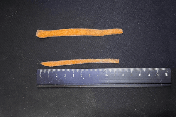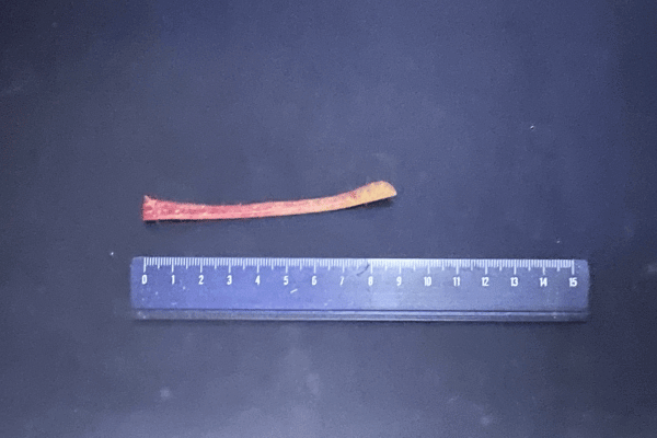 今では、写真のように細く削ったりんごの皮を与えるようにしています。