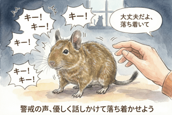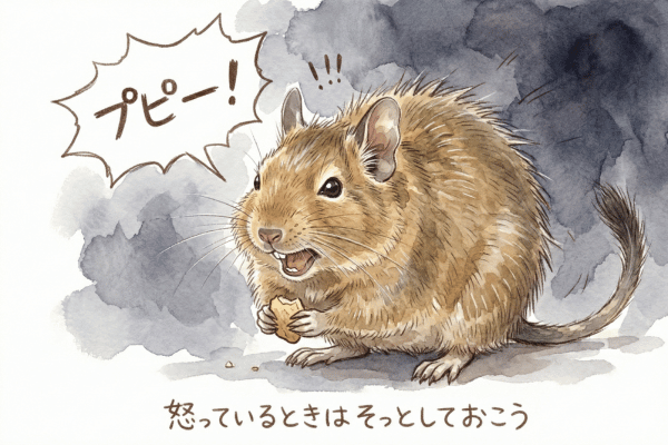 また、怒りや警戒の声には、無理に触れずに安全な距離を保ち、デグーが落ち着くのを待つのが適切です。