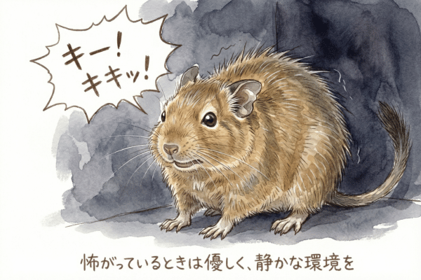 もしデグーが怖がっているようであれば、不安やストレスの原因を理解し、安心させるために静かな環境を提供することが大切です。