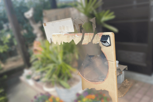 義実家では「段ボール」をメイン素材として使用しています。「え、水に弱いのでは?」と思われたかもしれませんが、設置場所に工夫があります。