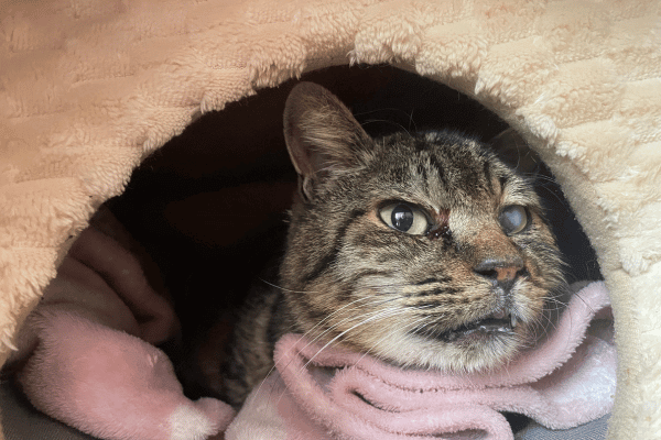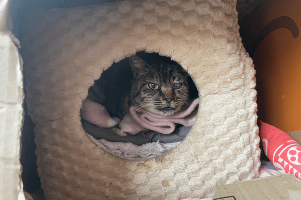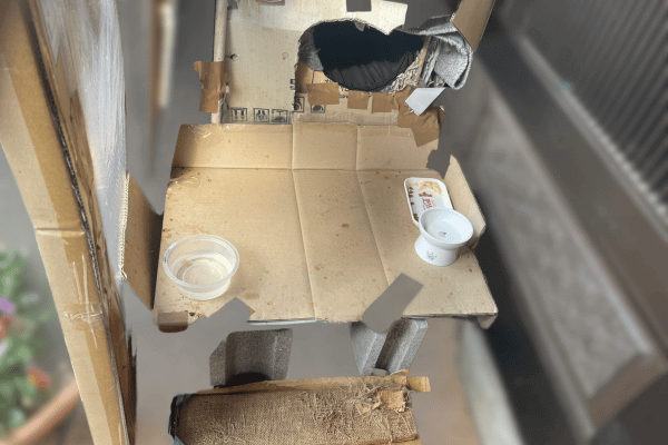 以前訪問した際は、段ボールに穴を開けたものにタオルを敷いている状態だったので、昨年末からの異常な寒さに対しては少し弱いと感じていました。