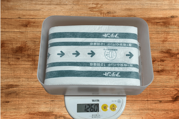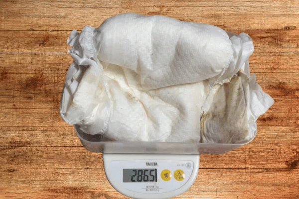 仕様前後の尿取りパッドの重量を計測したところ、700gほど増量していました。