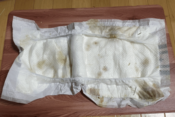 人間用のオムツに変更してから約8時間が経過した結果が、下記の写真です。