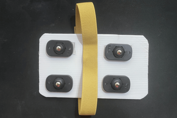 マジックテープで春太くんの体を台座に優しく固定できるようにしています。