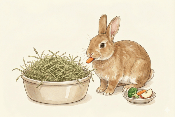 基本的には「牧草」を主食とし、不足する栄養をペレットで補うのが理想的な食事スタイルですが、おやつとして野菜や果物を適量与えることは、うさぎの楽しみやストレス解消にもつながります。
