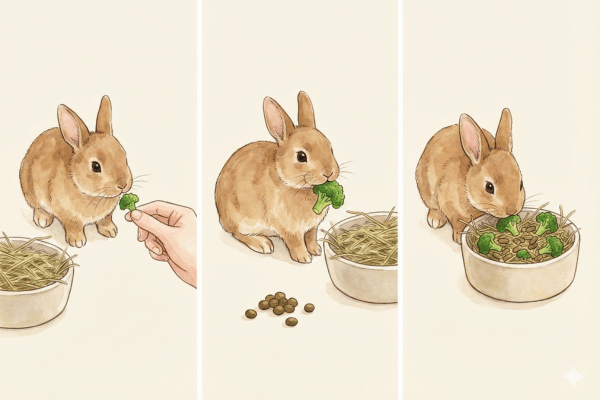 ここでは、新しい食品をうさぎの食事に取り入れる際の手順と注意点について説明します。