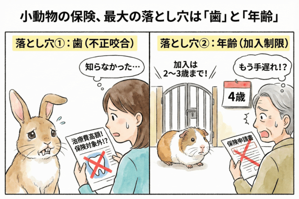犬や猫と違い、小動物の保険選びには特有の「罠」もあります。ここを知らずに入ると、いざという時に「保険が下りない!」と泣きを見ることになります。